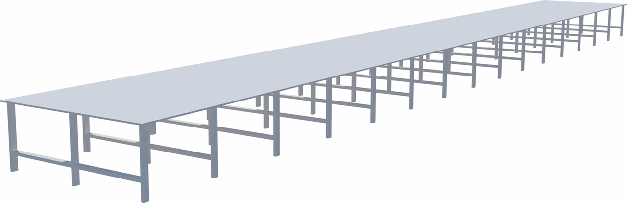 • Chân bàn bằng thép sơn tĩnh điện (màu sắc theo yêu cầu)• Ray inox 304 (50 x 25 mm)
