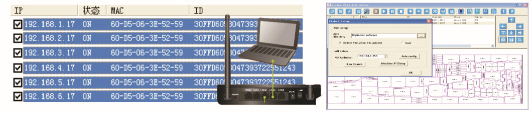 ⑥1. Máy tính PC điều khiển nhiều máy cắt phun thông qua bộ định tuyến;2. Phần mềm cắt và vẽ siêu thiết bị đầu cuối đầu tiên trên thế giới, máy tính đầu cuối có thể xem trước và chỉnh sửa từng tệp xếp hàng trong máy tính chủ;3. Phần mềm cắt máy chủ và máy in phun giao tiếp với phần mềm đầu cuối trong thời gian thực và không cần thiết phải đi bộ xung quanh giữa các máy tính khi kiểm tra và chỉnh sửa các tệp trong cắt máy in phun!