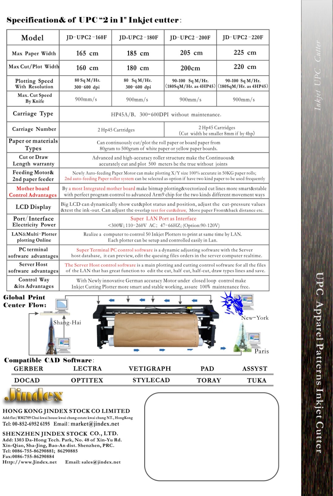 Jindex Upc Inkjet Cutter Thông số kỹ thuật và mô tả: